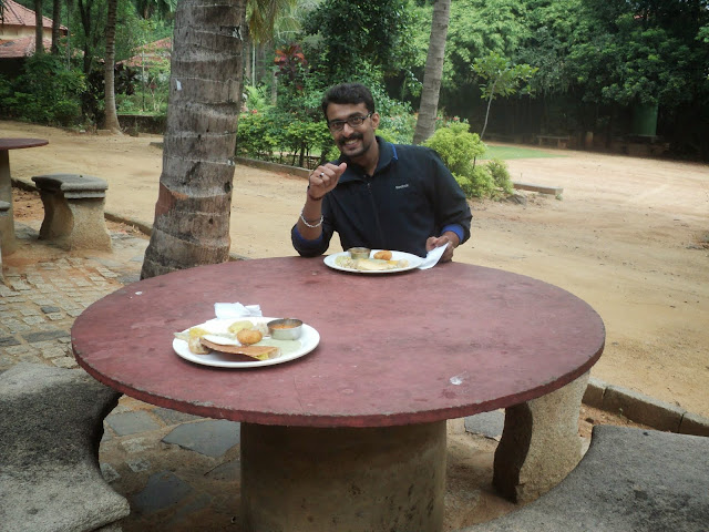 Yeah I was up at 05:00, did a few push ups & sit-ups, had a cup of coffee and settled back listening to music. Yes, we were going to have breakfast, and the scheduled time was 08:00. (now don’t ask me why I would get up so early) After others arrived at my place, we decided to leave Bangalore.