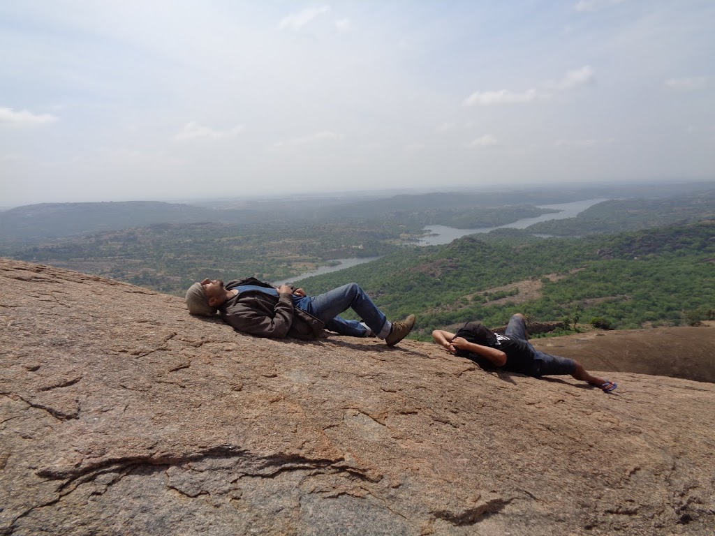 We rested quite some time at the first for wall. Our ascending pace during the second stretch drastically reduced. As we began climbing up towards the second fort wall a beautiful scenery began to emerge behind us. Manchinebele started to reveal itself amidst all green thick forest. IT was a breath taking sight and got us pumped up. With a few naps on the rock and some hard pushing we made it to the second fort wall.