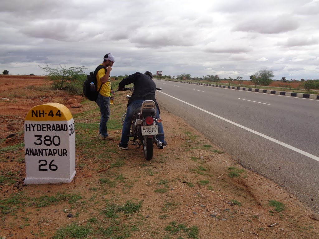 We pulled over at about 25kms from Ananthpur and sat on the highway for