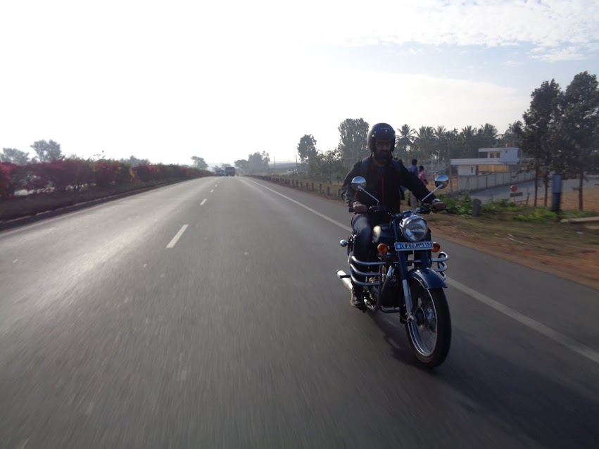Oh yeah woke up at 04:00, did a few push-ups & sit-ups, had a sip of coffee & was all set to go! Called up Deefu & Adi woke them up as well. Went near Adi’s home picked him up and we both headed on the ORR towards Deefu’s place. Deefu joined us on ORR at the Mahalakshmi layout junction on his “Blue Blizzard” his new enfield. It looked like a perfect bike for him. TIME: 07:00