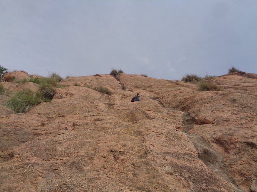 Like they say, don’t ever be sure of a rock face until you rub noses with her. This was the case, even though it looked promising, it proved to be one insanely tough cookie. As I began scaling up the rock face, I realized it was steeper than anticipated and cracks to hold on to, were scarce. But there was no going back now, I made it up a few feet and settled into a nice dug out and gave Deefu a thumbs up. Deefu too made it up cautiously. We tightened up our shoe laces as we knew the next phase would be insane.