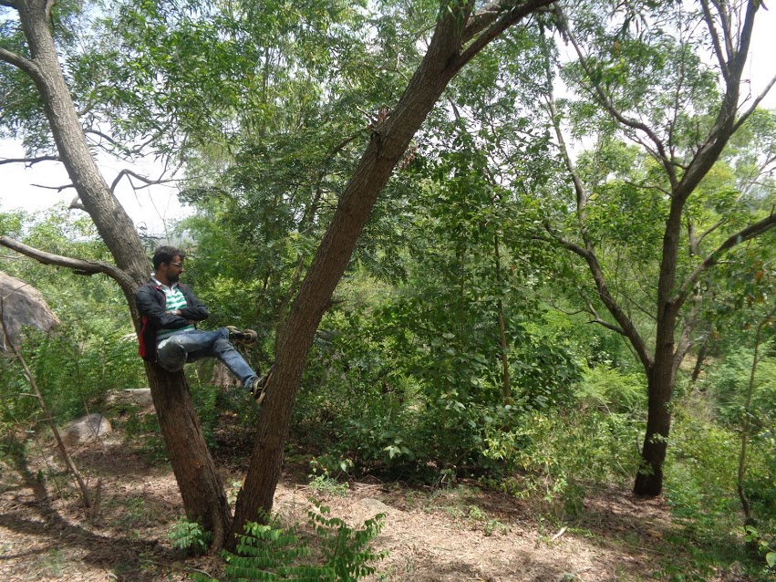 Once we reached the top, we actually wanted to explore the place and find the actual route. But holding onto our horses we found a nice shade and collapsed. Sipping a bit of water and having some chocolates we discussed about future trips. We rested for sometime and then decided to head back down. We scoured the place and found the actual pathway.