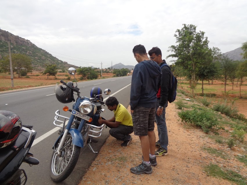 After the breakfast, we walked out for some light tea and we came with a concrete plan to ride 50kms and pull over for a short break. It was the only way, the day wouldn’t feel dead tiresome. So, we decided next stop would be Madhugiri (100kms) after that Pavagada (150kms) and then we ride into Nidgal and take it down.