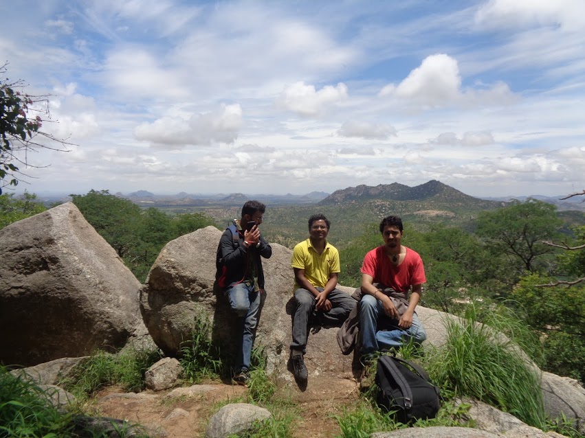 Once we got off our saddles and stretched out, had some water and chocolates, a question struck me. I turned to Momz and asked him the inevitable question “momz, which is the hillock we had been to for today?” as the blankness began to descend on his face so did the choking laughter on us. With Madhugiri right behind us, he made a good attempt and said “Madhukkal” Hahaha! Momz is Momz!